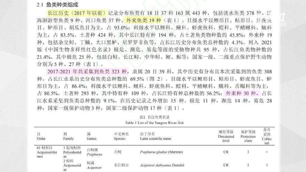 近年來,長江流域受外來物種入侵的潛在威脅加大。以農業農村部部署的第二輪“長江漁業資源與環境調查”為例,2017至2021年,共采集到魚類323種,其中外來種30種。而在2017年以前,長江歷史記錄分布魚類中,外來種為19種。
