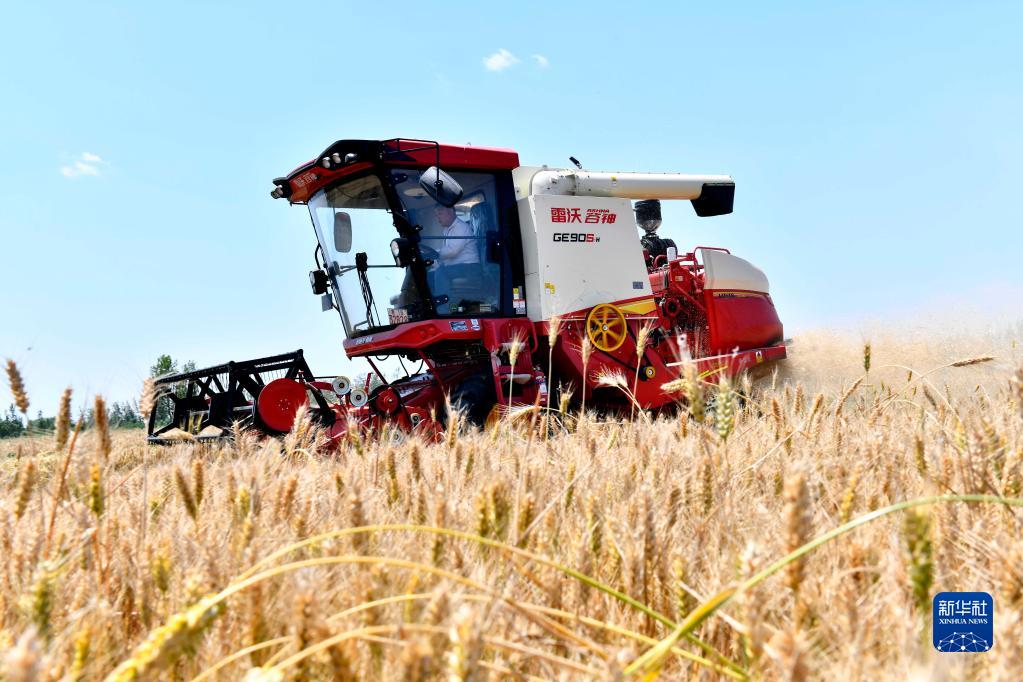 在山東省惠民縣桑落墅鎮,農民駕駛農機收獲小麥(2022年6月7日攝)。 新華社記者 郭緒雷 攝