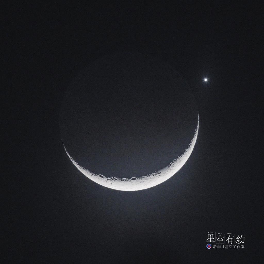 天津市天文攝影愛好者楊劍2023年3月24日在天津南開拍攝的金星伴月。(本人供圖)