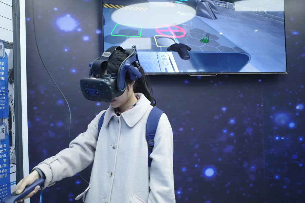 參展觀眾通過VR虛擬場景,體驗未來月球科研任務。 新華社記者欒若卉 攝