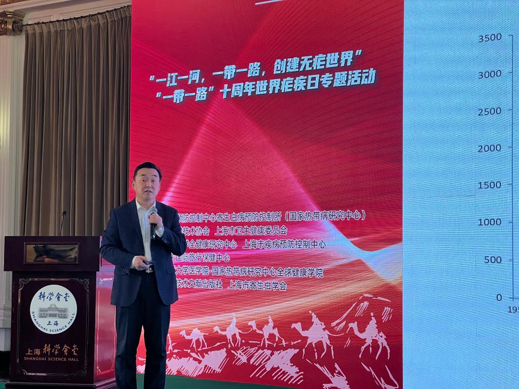 4月25日,中國疾控中心寄生蟲病所所長周曉農(nóng)在“一帶一路”十周年世界防治瘧疾日專題活動現(xiàn)場介紹我國防治瘧疾經(jīng)驗方案。新華社記者顧天成攝