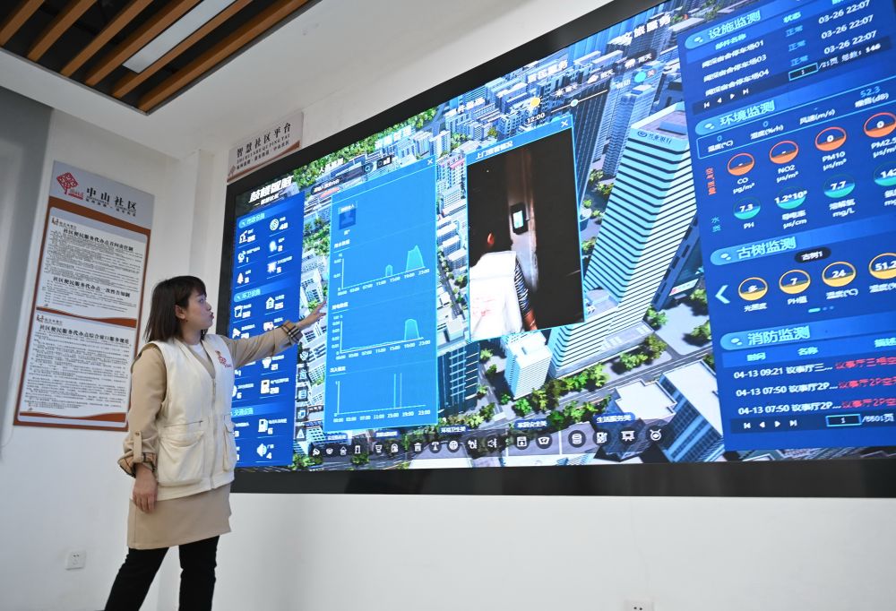 福州市鼓樓區是國家智能社會治理綜合實驗基地,社區工作者林英在鼓樓區鼓東街道中山社區介紹“智慧社區”建設提升基層治理能力情況(4月25日攝)。新華社記者 林善傳 攝