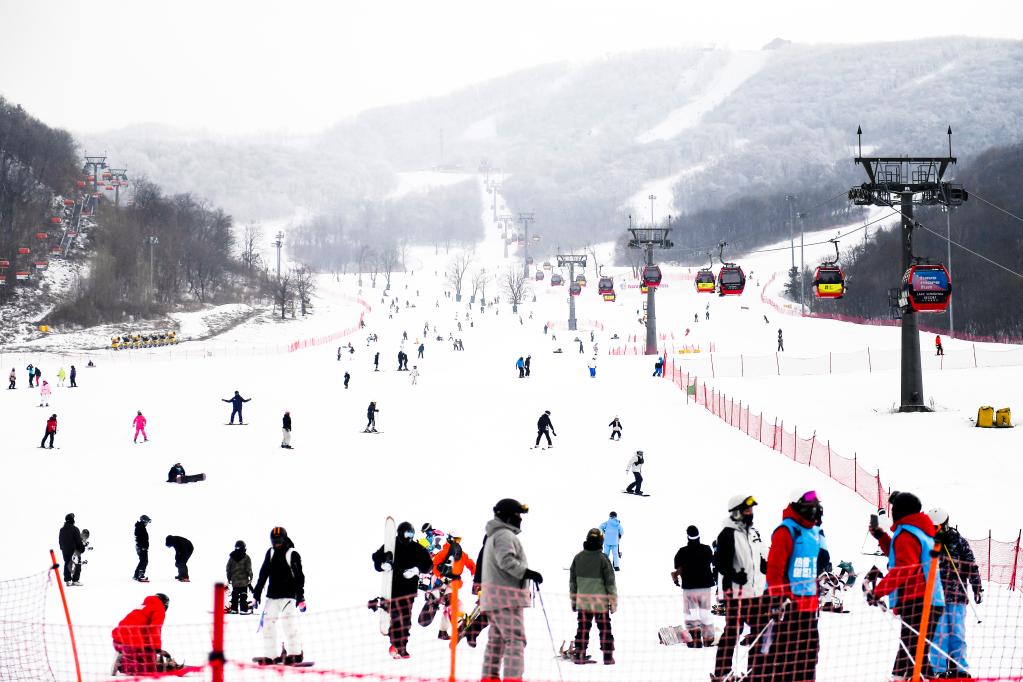 1月23日,滑雪愛好者在吉林市萬科松花湖度假區滑雪。新華社記者 許暢 攝