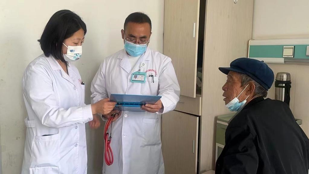 青海省心腦血管病專科醫院呼吸科副主任醫師趙振峰(左二)在為患者講解病情。(青海省心腦血管病專科醫院供圖)