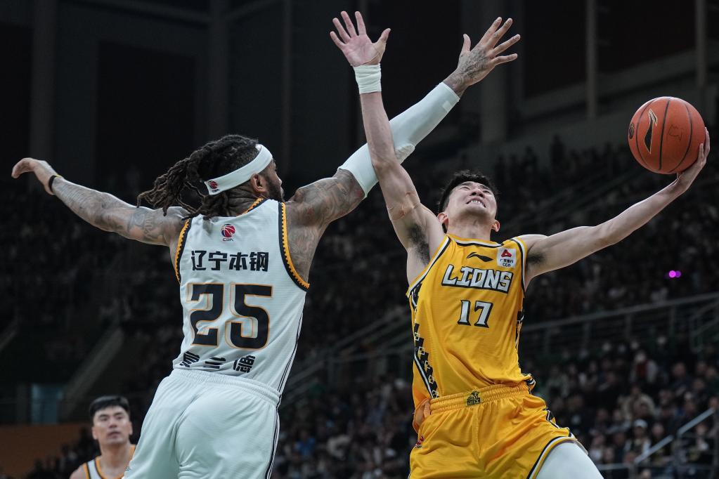 4月30日,深圳隊孫浩欽(中)在比賽中上籃。新華社發(彭志剛攝)