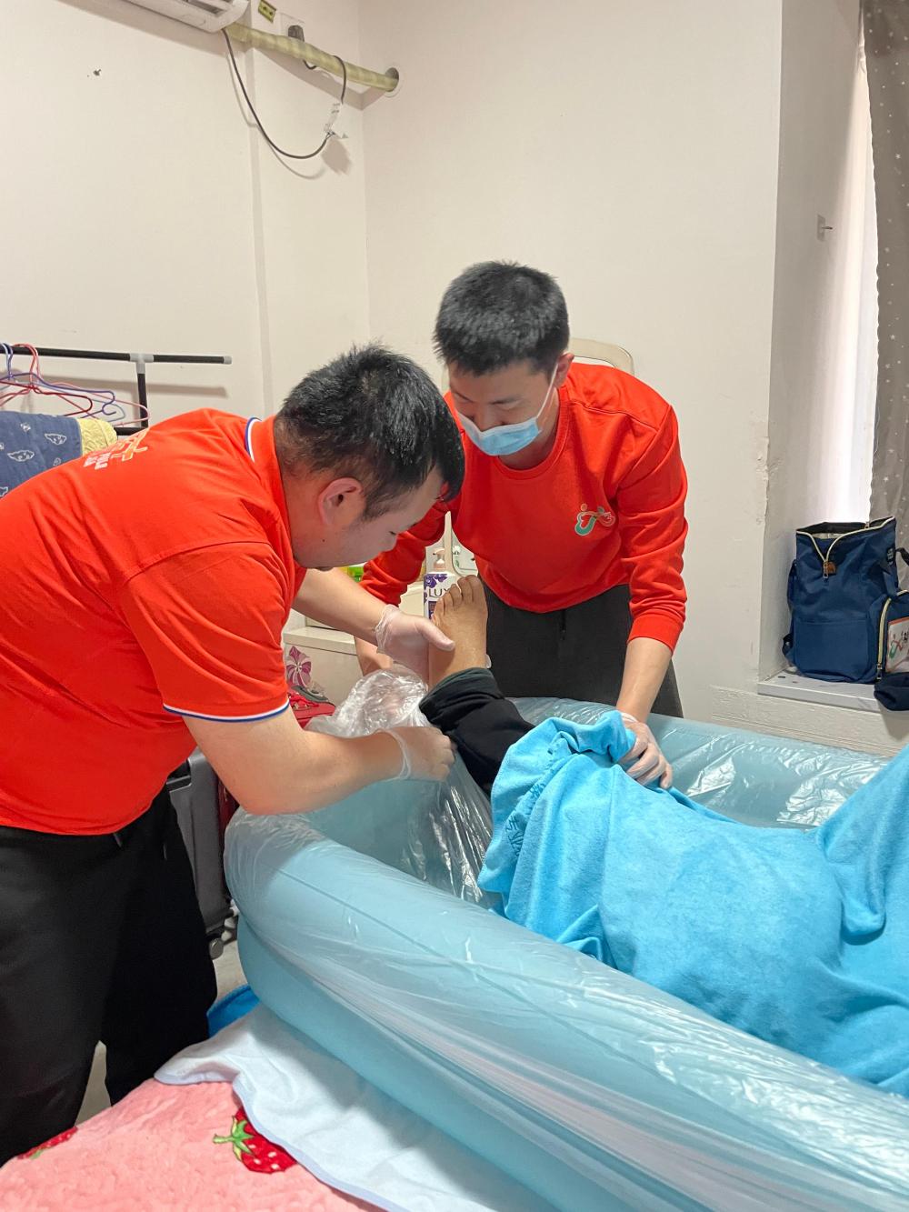去年7月,晏楊俊祺上門為一位失能老人助浴。當他完成服務,老人的家屬拉著他的手說:“像我們這種需求肯定有很多,你們應該多多推廣,擴大業務。”