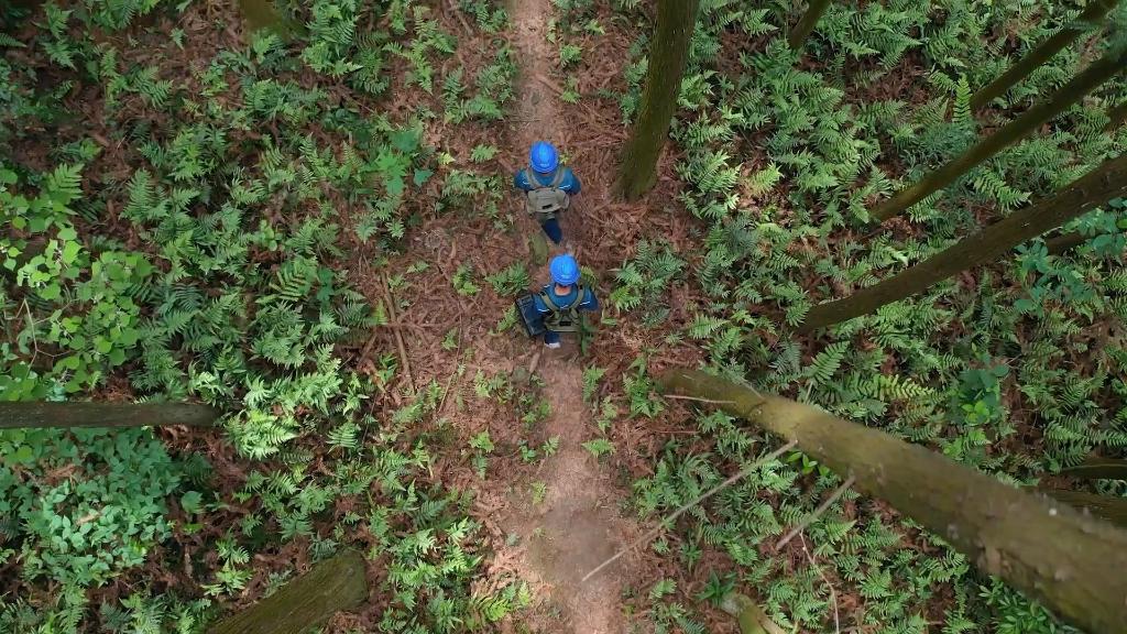 夏日清晨,江西鷹潭55歲的群眾護線員肖冬樣和同事來到龍虎山上清鎮沙灣村,對山區的輸電鐵塔進行巡視,并查看野生動物的活動痕跡。