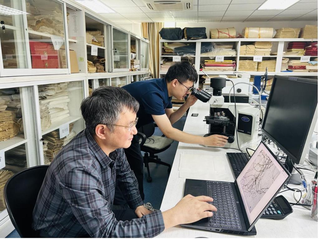 手工紙研究所正在進行手工紙的纖維測試與觀察。新華社記者 周暢 攝