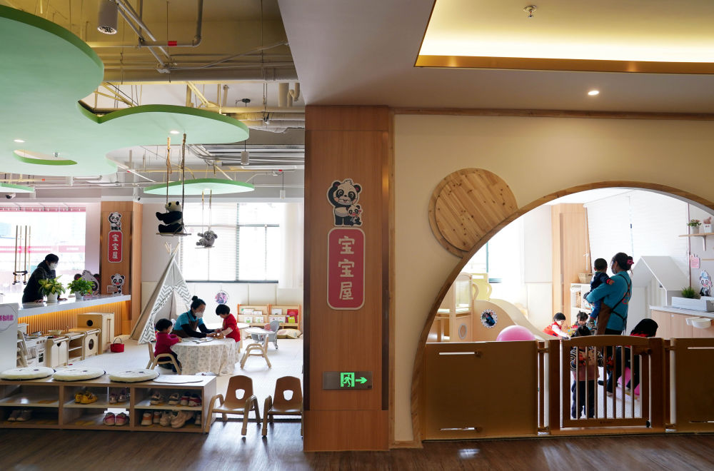 位于上海江寧路街道社區(qū)綜合為老服務中心內(nèi)的社區(qū)“寶寶屋”(2022年3月7日攝)。新華社記者 劉穎 攝