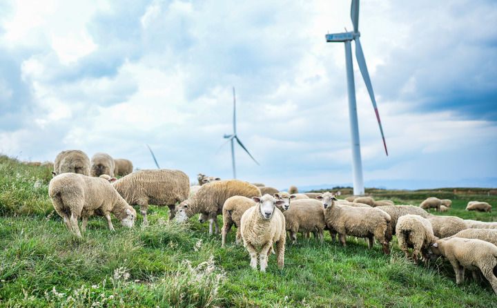 畢節(jié)威寧縣雪山鎮(zhèn)村民飼養(yǎng)的羊群在風(fēng)力發(fā)電設(shè)備下的草場吃草(7月13日攝)。新華社記者 陶亮 攝
