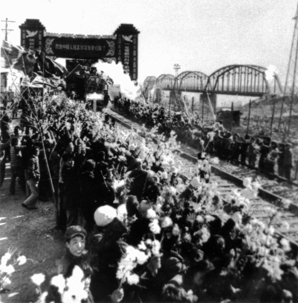 “鴨綠江波涌,日照凱旋門。六億人民一條心,歡呼:歡迎!歡迎!”作家老舍曾在《安東日報》上發表一首小詩,形容的正是當時的場景。