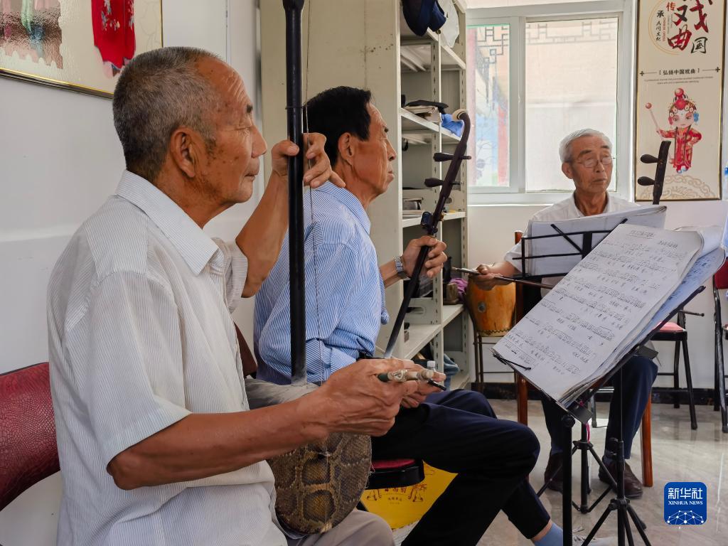 河北省灤平縣火斗山鎮(zhèn)拉海溝村評劇藝術(shù)團的成員在排練節(jié)目(7月5日攝,手機照片)。新華社記者 牟宇 攝