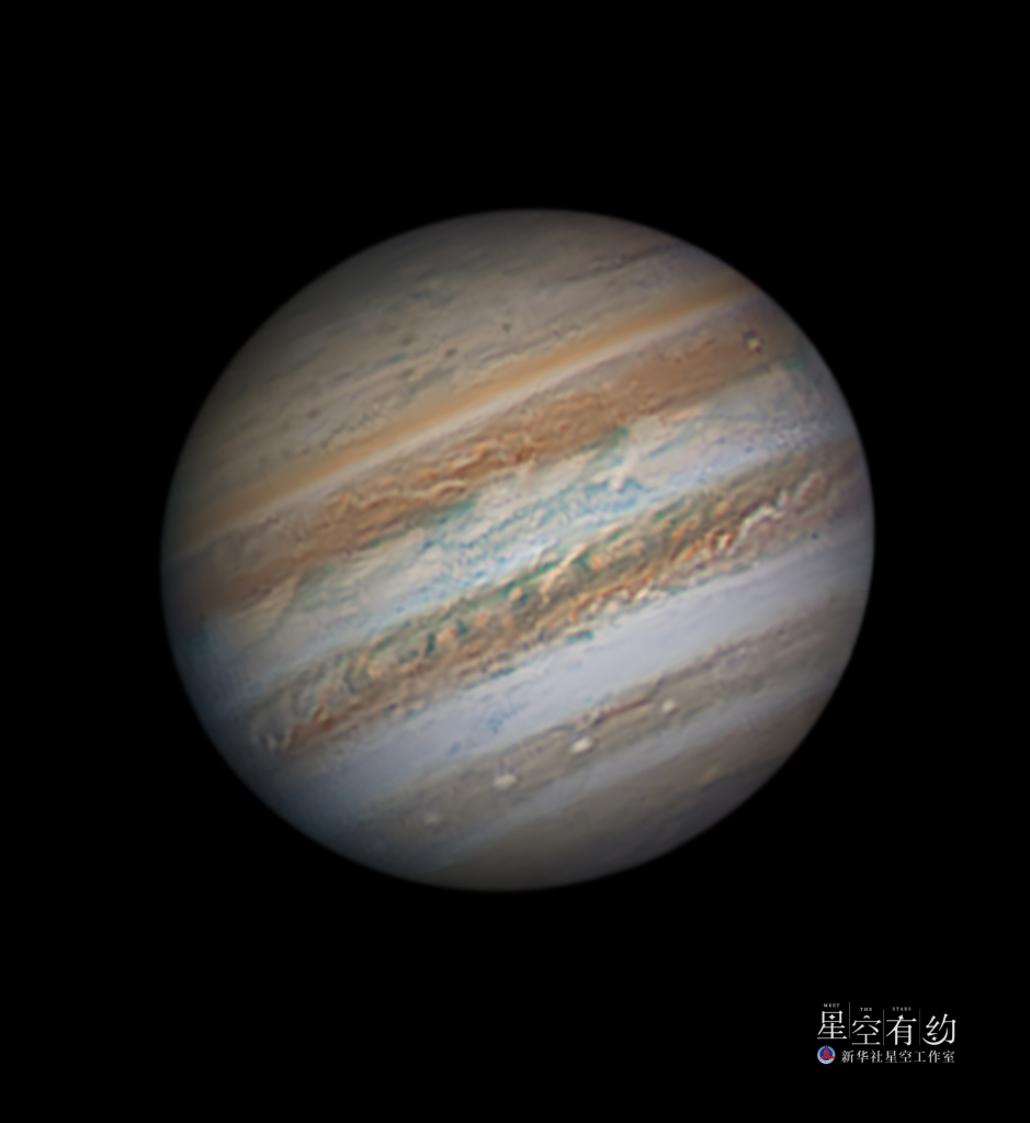天津市天文攝影愛好者胡豐2021年8月1日在河北省保定市淶源縣拍攝的木星。(本人供圖)