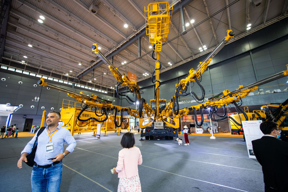 在長沙國際會展中心,觀眾在第三屆長沙國際工程機械展覽會參觀展出的工程機械設備(5月15日攝)。新華社記者 陳思汗 攝