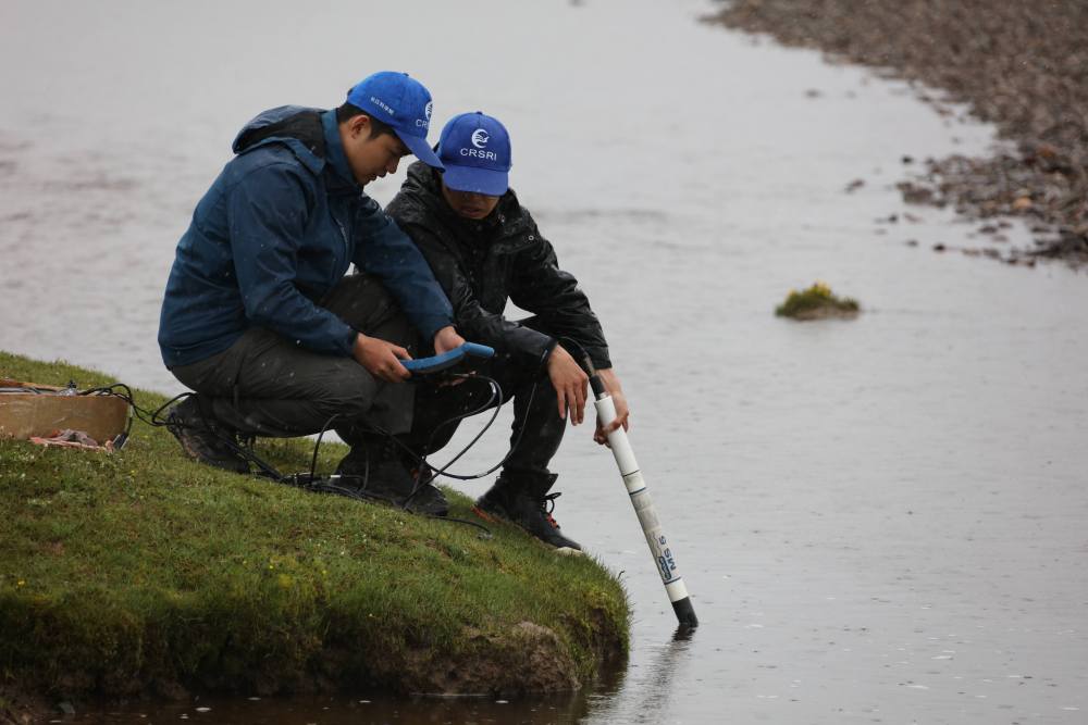 來自長江科學院河流研究所的科考隊員徐志成和楊緒海,每到一個采樣點就采集河道床沙和懸沙樣品,測量河寬、水深、比降、流速,對比此前科考觀測數據,分析長江源區河道水沙輸移特性和河床演變情況。
