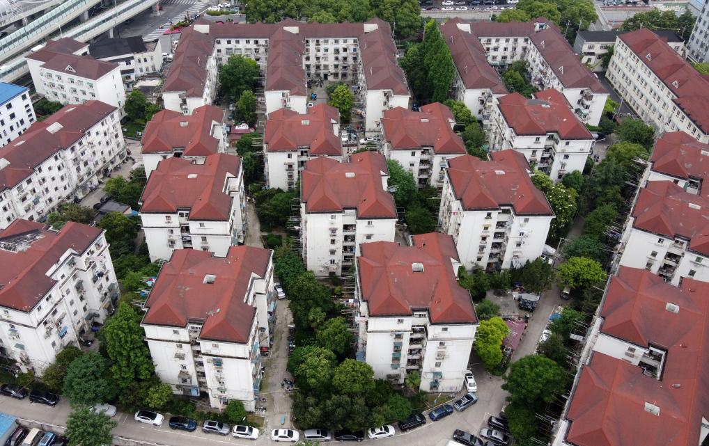上海市中心城區(qū),上海火車站東南側(cè),蘇州河北岸,川流不息的南北高架橋下,有一片紅頂白墻的多層住宅樓房。