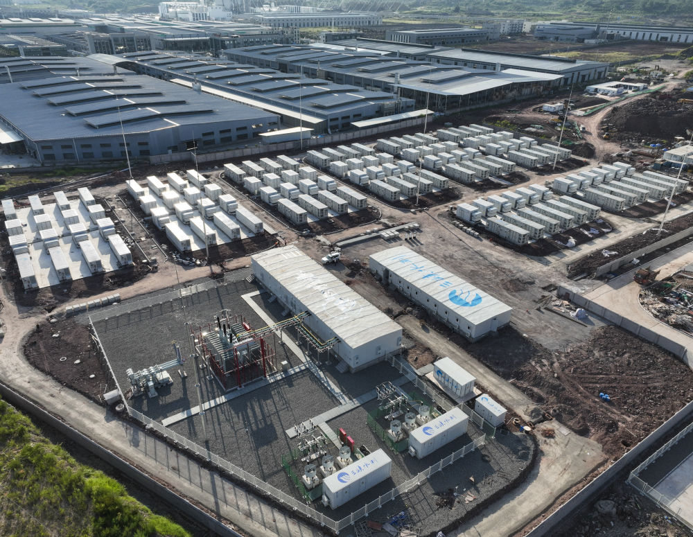 新建成的重慶永川松溉儲能電站。該儲能電站位于重慶市永川區港橋園區內,是2023年重慶市級重點項目之一(無人機照片,2023年8月14日攝)。新華社記者 王全超 攝