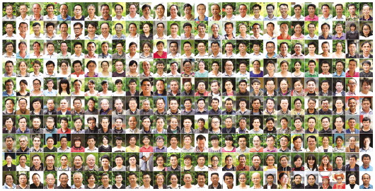 ▲這是2012年至今拍攝的廣西20個縣130多所大山學校270名老師的肖像(拼版照片)。 新華社記者陸波岸攝