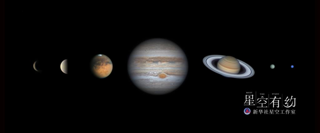 廣東省天文攝影愛好者周志偉2020年拍攝的水星、金星、火星、木星、土星、天王星、海王星(多張疊加)。(本人供圖)