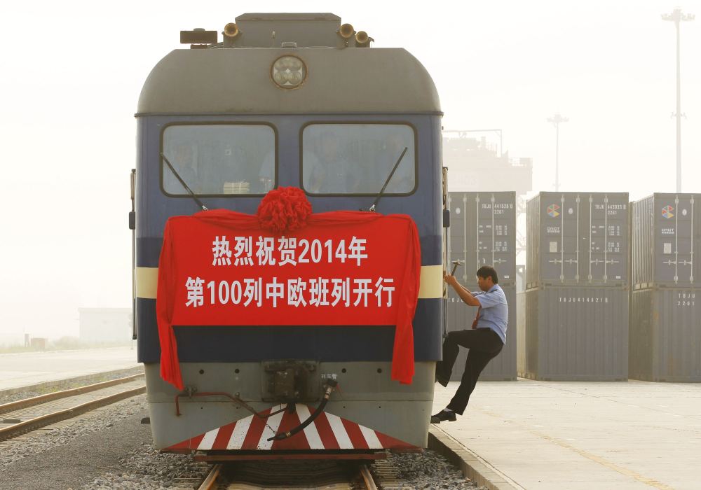 2014年8月1日,2014年第100列中歐班列在鄭州圃田集裝箱中心站準備出發,前往德國漢堡。 新華社記者 邢廣利 攝