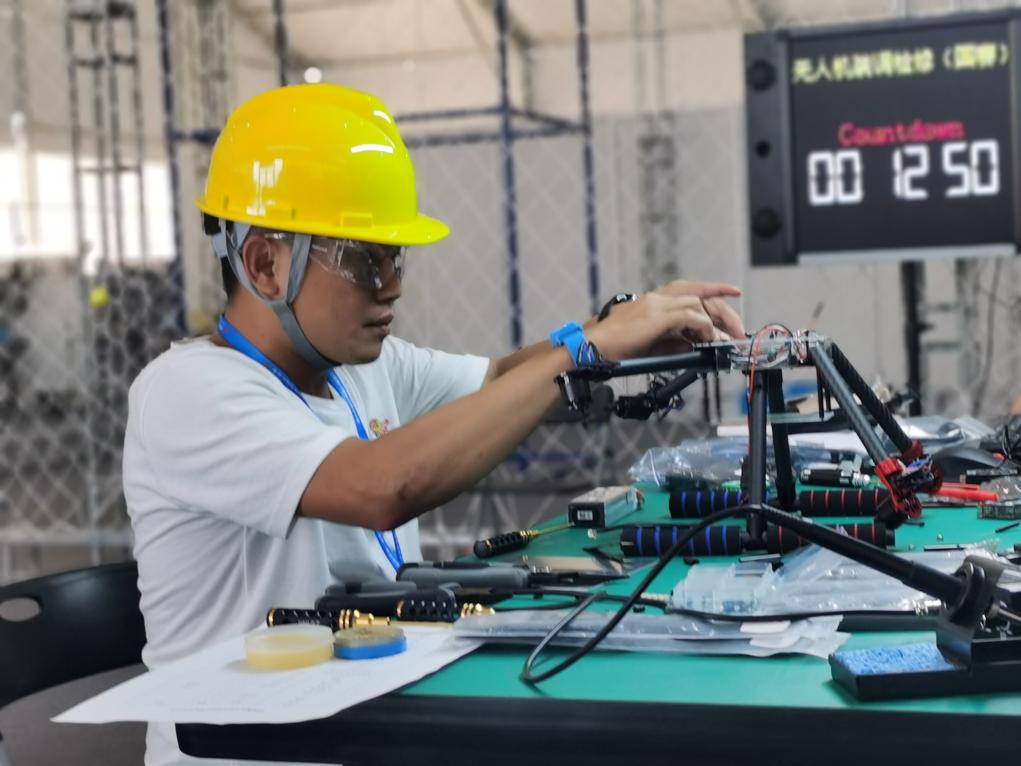 選手參加無人機裝調檢修賽項比賽。新華社記者 劉惟真 攝
