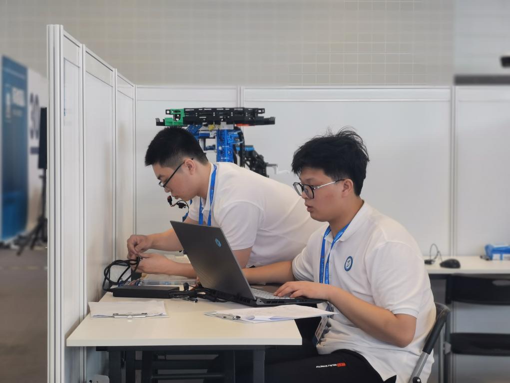 選手參加工業機器人系統操作賽項比賽。新華社記者 劉惟真 攝