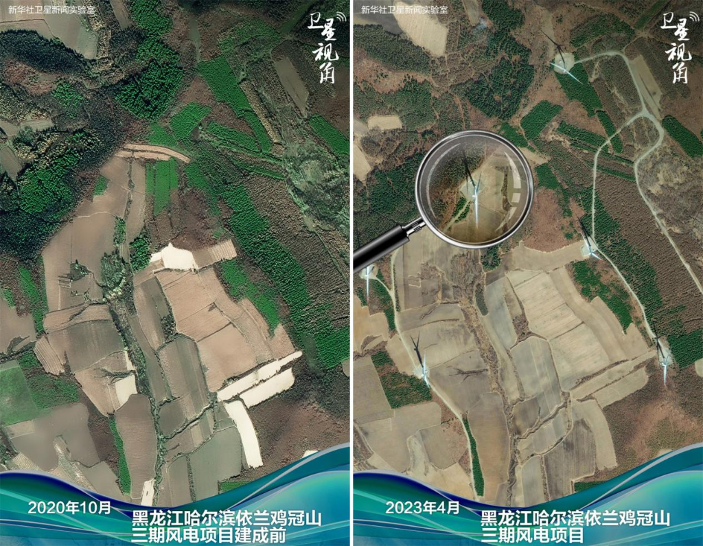 ↑2023年和2020年對比,黑龍江哈爾濱依蘭雞冠山三期風電項目實現并網發電。
