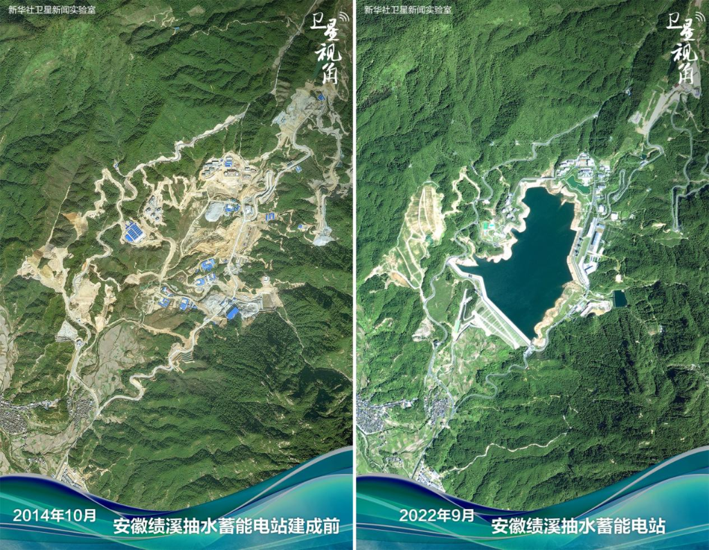 ↑2022年與2014年對比,“超級充電寶”安徽績溪抽水蓄能電站已投產運行。