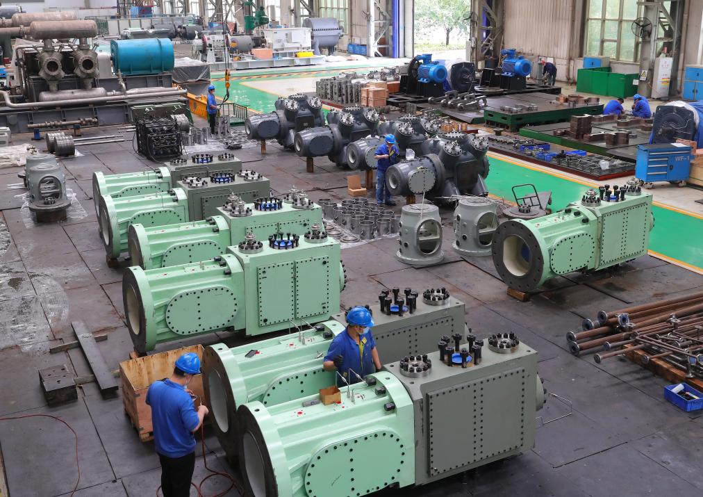 2022年6月13日,在沈鼓集團(tuán),工人在車(chē)間工作。新華社記者 楊青 攝