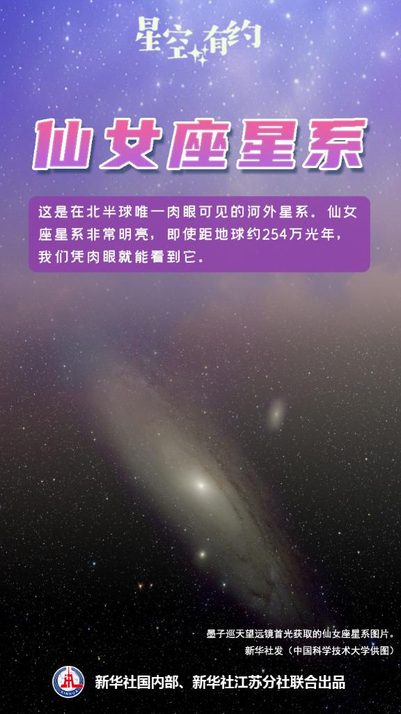秋季星空還可以看到北半球唯一肉眼可見的河外星系——仙女座星系。“仙女座星系自身直徑約20萬光年,是比銀河系還要大的旋渦星系。”王科超說,仙女座星系非常明亮,即使距地球約254萬光年,我們?nèi)匀荒軌驊{肉眼就看到它,這也是我們在地球上肉眼可見的最遙遠天體。