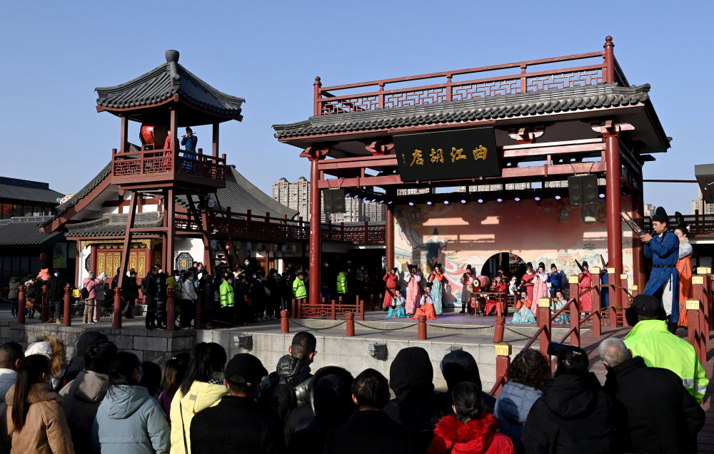 這是西安大唐芙蓉園內的西安鼓樂演出(2023年1月24日攝)。新華社記者 劉瀟 攝