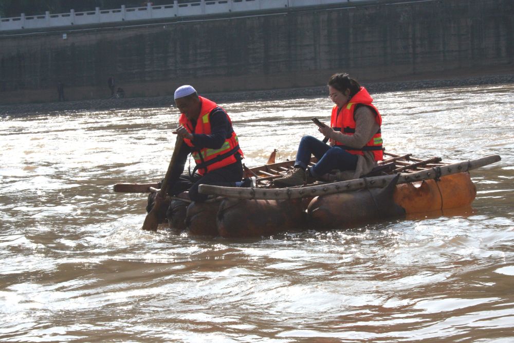 筏子以羊皮為囊,充氣、扎縛、用木架捆綁而成,是一種古老的水上運輸工具,現已成為甘肅省級非物質文化遺產。蘭州市七里河區羊皮筏子非遺傳承人馬建華說,以前羊皮筏子作為黃河水上重要載具曾繁盛一時,后來隨著汽車的興起而衰落,如今在游客追捧中,古老筏子再度浮現在黃河水面,成為一道靚麗風景線。