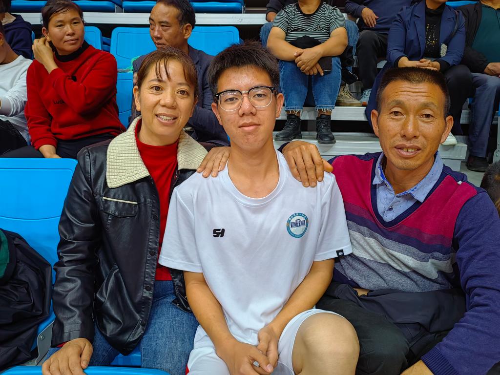 出場(chǎng)時(shí),他雙手牽著父母小跑著入場(chǎng)