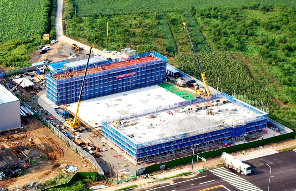 在沈陽市鐵西區拍攝的德國賀利氏特種光源項目建設現場(2023年8月28日攝,無人機照片)。新華社記者 楊青 攝