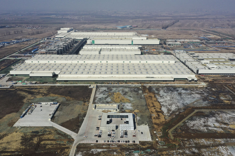 工人在位于長春的奧迪一汽新能源項目建設現場施工(2023年1月31日攝,無人機照片)。新華社發(王勐 攝)