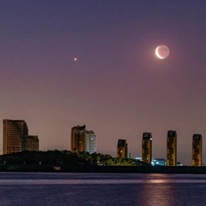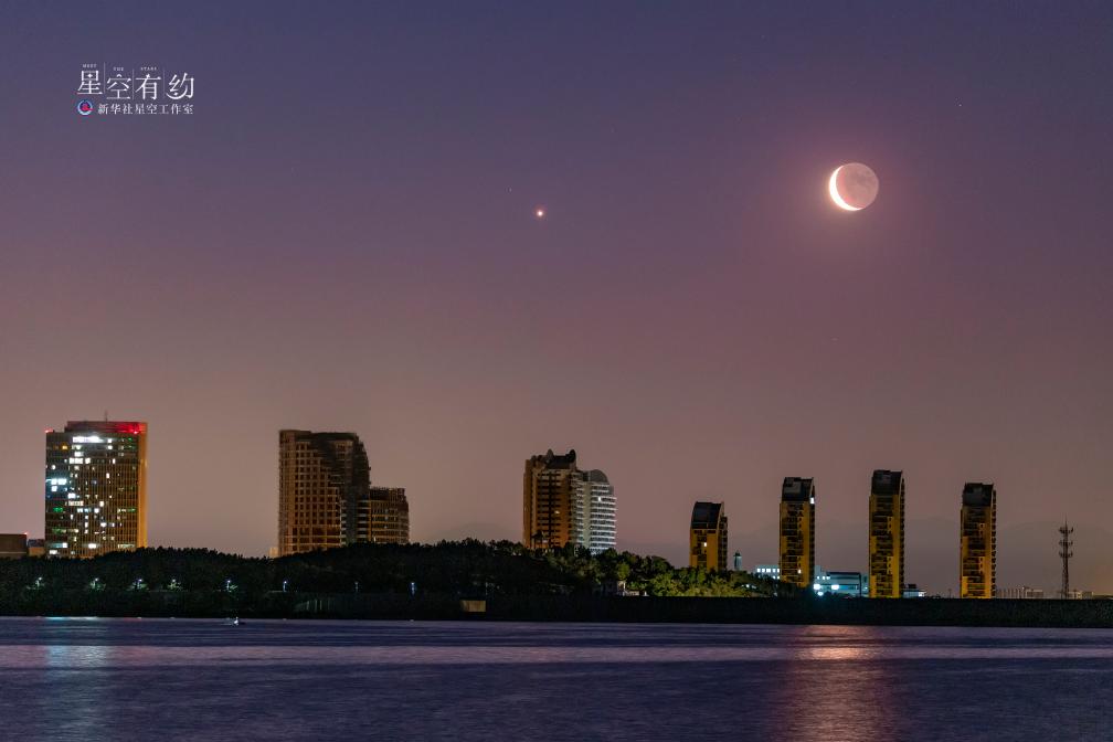 北京星空攝影愛好者黃筱秦2022年7月27日凌晨在海南文昌拍攝的金星伴月。(本人供圖)
