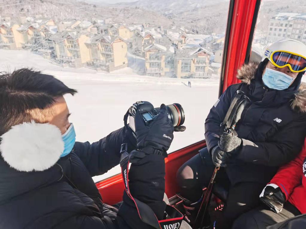 從山頂滑到指定的采訪位置