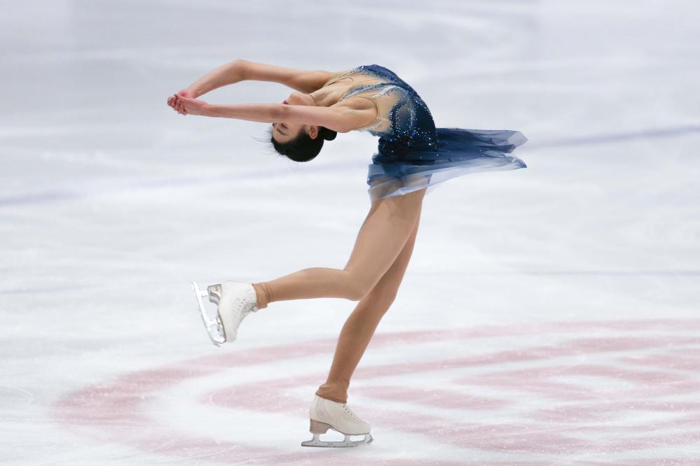 4月12日,陳虹伊在2022/2023賽季全國花樣滑冰冠軍賽中