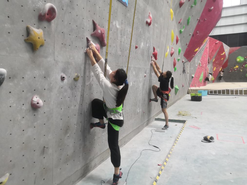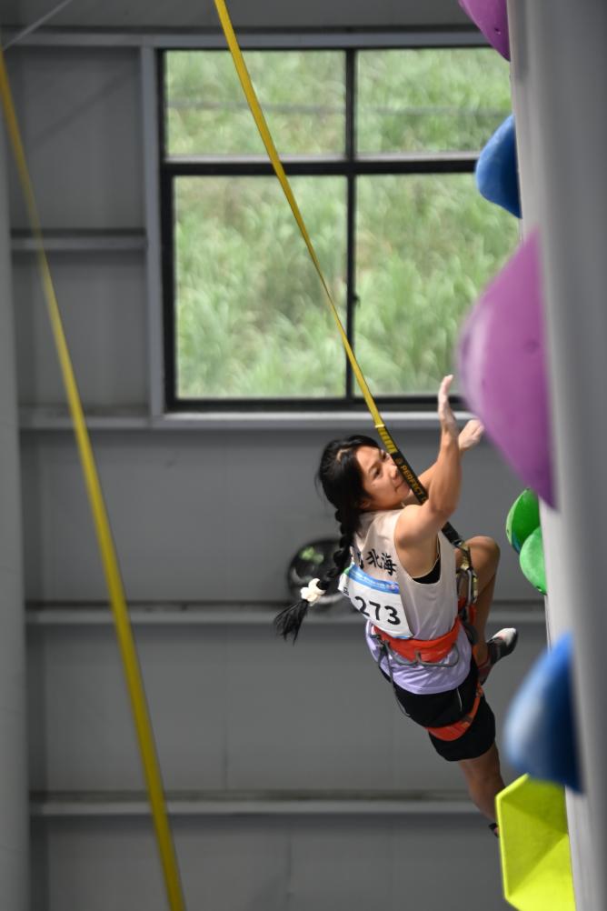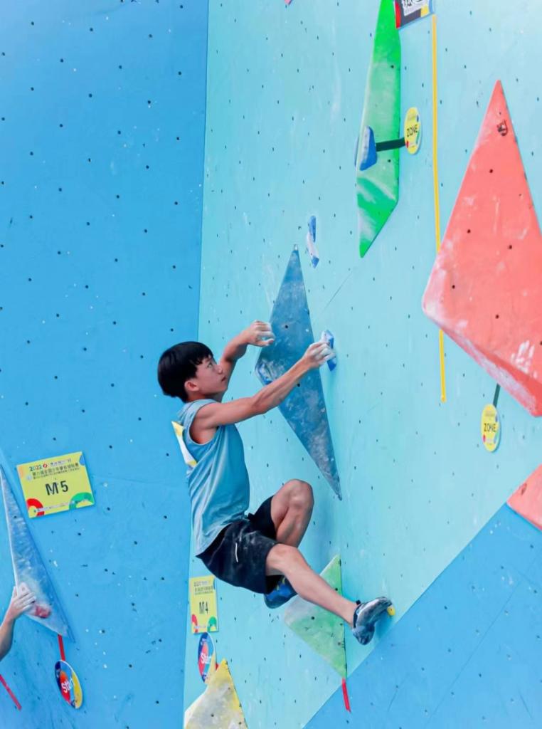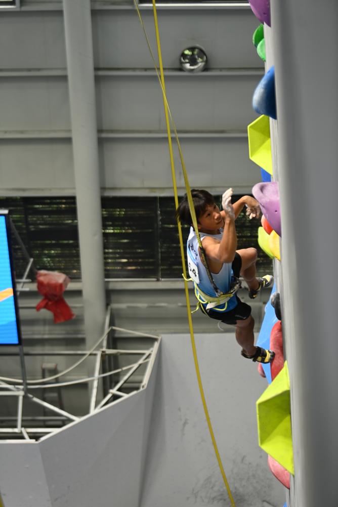 圖為馬山攀巖小將在首屆學青會攀巖比賽中