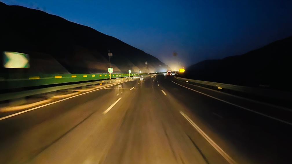 記者在前往榆中的郵政貨車上拍攝的道路情況。新華社記者李杰 攝