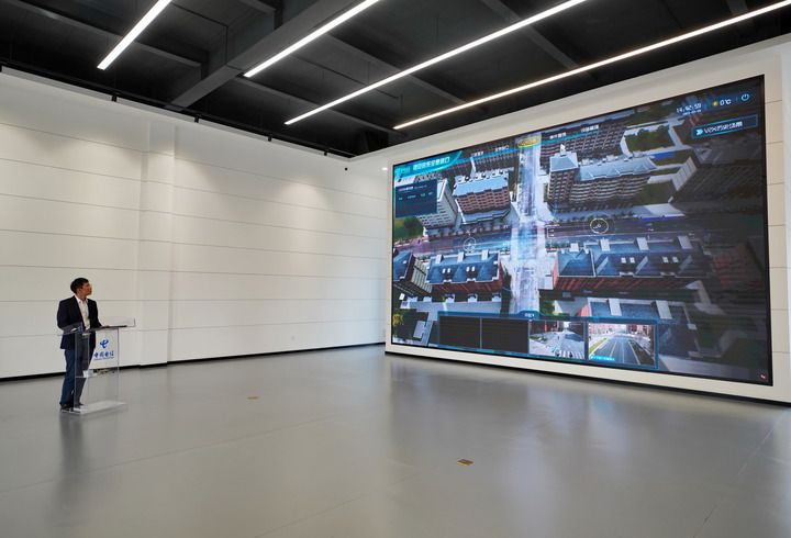 雄安新區中國電信智慧城市產業園的工作人員展示數字道路運營系統(2023年3月24日攝)。新華社記者 牟宇 攝