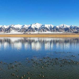 記者和巡護員一起,自西向東巡護保護區。一路顛簸行進,沿途不時可見到三五成群的藏羚羊,點綴在草原上。當發現車輛經過時,它們會停下步伐,齊刷刷地抬頭望來,耳朵直立,機敏地判斷是否有危險。向遠望去,沙漠與沙湖相映,高原野兔四處觀望,黑頸鶴翩翩起舞,讓這個“無人區”生機勃勃。