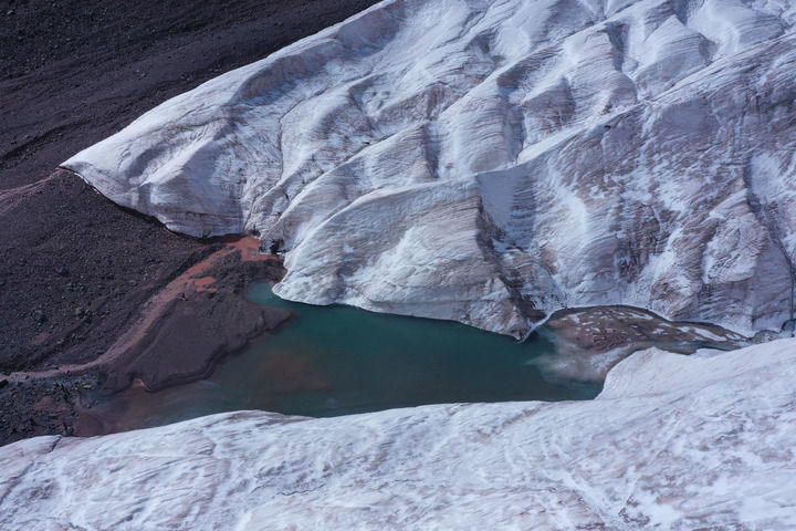 這是2023年7月27日在長江源拍攝的冬克瑪底冰川。受升溫影響,冬克瑪底冰川末端持續退縮。新華每日電訊記者 陳杰 攝