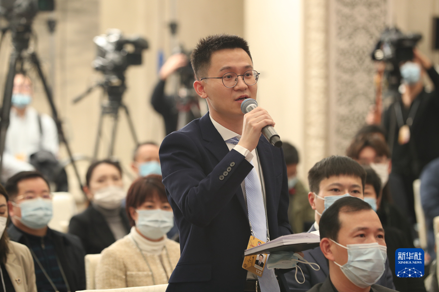 3月3日,全國政協十四屆一次會議新聞發布會在北京舉行,大會新聞發言人郭衛民向中外媒體介紹本次大會有關情況并回答記者提問。圖為新華社記者提問。新華網記者 焦鵬 攝