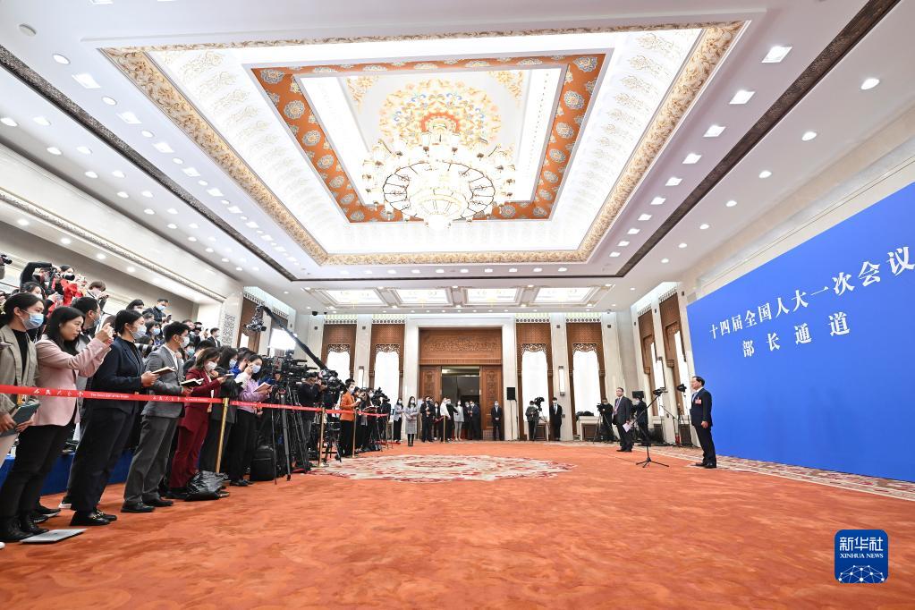 3月5日,第十四屆全國人民代表大會第一次會議舉行首場“部長通道”采訪活動。新華社記者 劉金海 攝