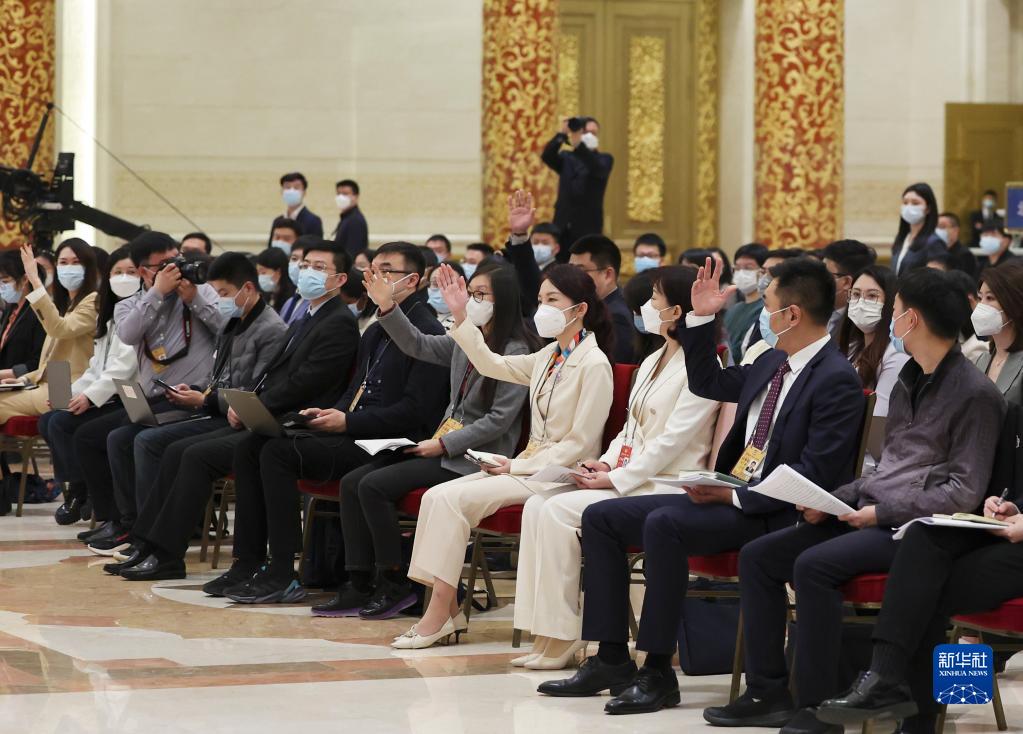 3月5日,全國政協(xié)十四屆一次會議在北京人民大會堂舉行民主黨派中央和全國工商聯(lián)領(lǐng)導人記者會。這是記者在舉手提問。