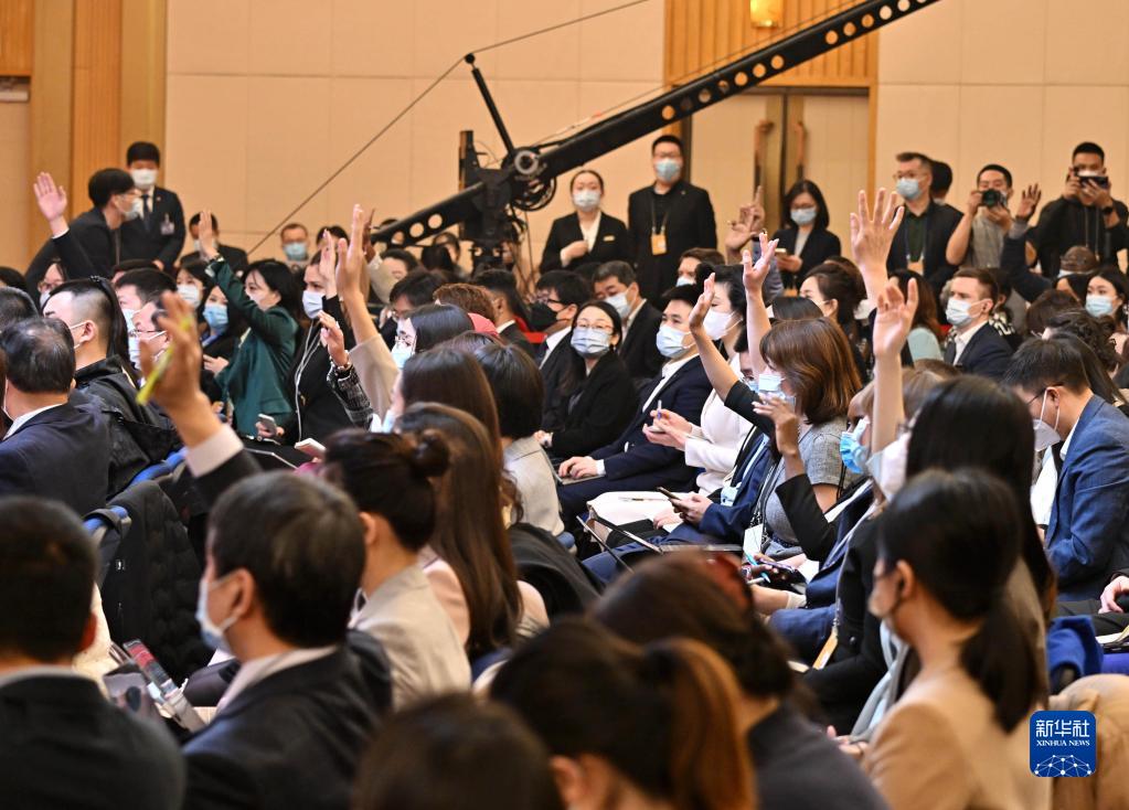 3月7日,十四屆全國人大一次會議在北京梅地亞中心多功能廳舉行記者會,外交部長秦剛就“中國外交政策和對外關系”相關問題回答中外記者提問。這是記者在現場舉手提問。