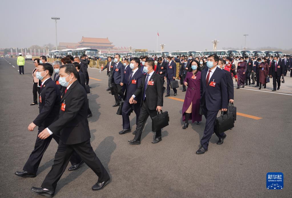 3月7日,十四屆全國人大一次會議在北京人民大會堂舉行第二次全體會議。這是全國人大代表走向會場。
