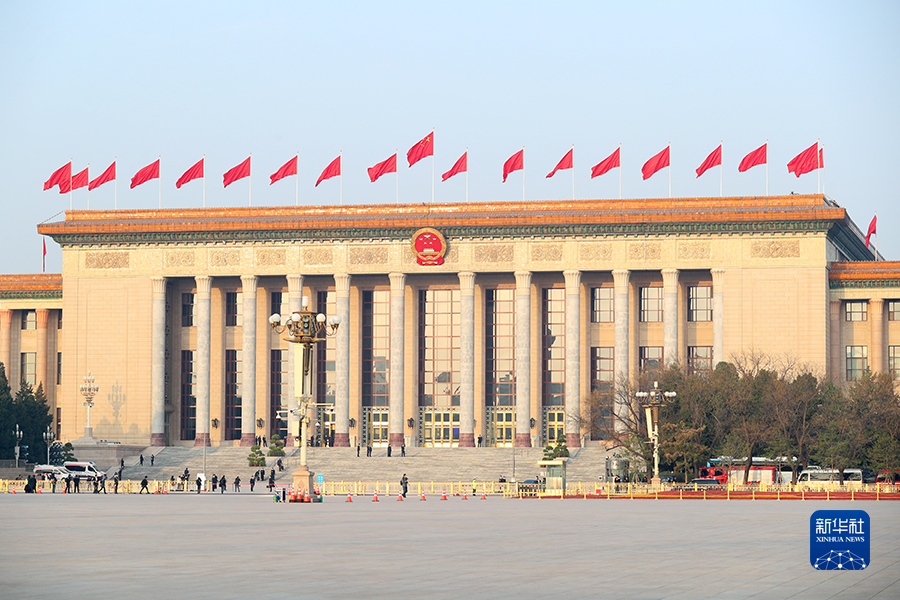10日上午9時,十四屆全國人大一次會議在人民大會堂舉行第三次全體會議。圖為人民大會堂外景。(新華網記者 焦鵬 攝)