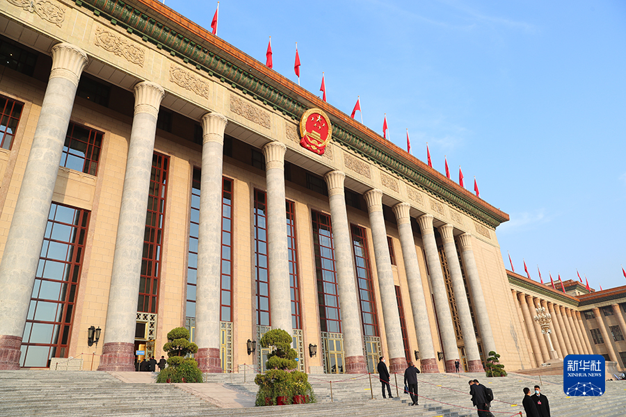 10日上午9時,十四屆全國人大一次會議在人民大會堂舉行第三次全體會議。圖為人民大會堂外景。(新華網記者 焦鵬 攝)